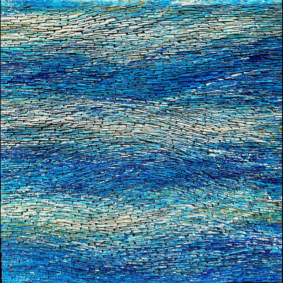 "Out of the Blue 2" by Pat McNabb Martin measures 36 inches tall by 36 inches wide.