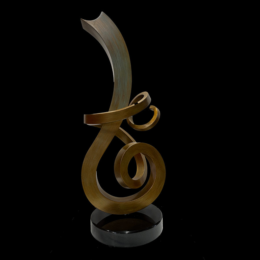 "Seeking Sun" by Gilberto Romero is a one-of-a-kind bronze sculptures. It measures 35 inches tall by 14 inches wide and 14 inches deep. The sculpture is custom-fabricated bronze. This piece is designed for either indoor or outdoor use.