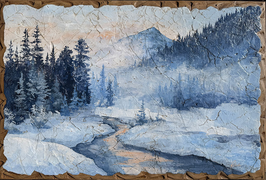 "Snowy River Dreams" by Rolinda Stotts is an original painting that measures 25.5" tall by 38" wide.