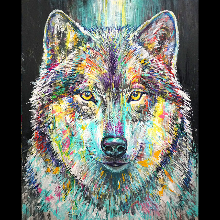 "Dissolve" by David V Gonzales is an original acrylic on panel painting that measures 60" tall by 48" wide. The painting is finished on all four edges for a beautiful finish that eschews the need for framing. "Dissolve" is a fantastic example of Gonzales' wildlife paintings. He paints in an abstracted style with enough elements of realism to make the painting exciting and powerful.