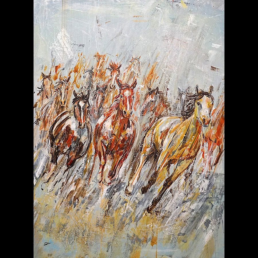 "Wild and Free" by David V Gonzales is an original acrylic on panel painting that measures 48" tall by 36" wide. The painting is finished on all four edges for a beautiful finish that eschews the need for framing. "Wild and Free" is a fantastic example of Gonzales' wildlife paintings. He paints in an abstracted style with enough elements of realism to make the painting exciting and powerful.