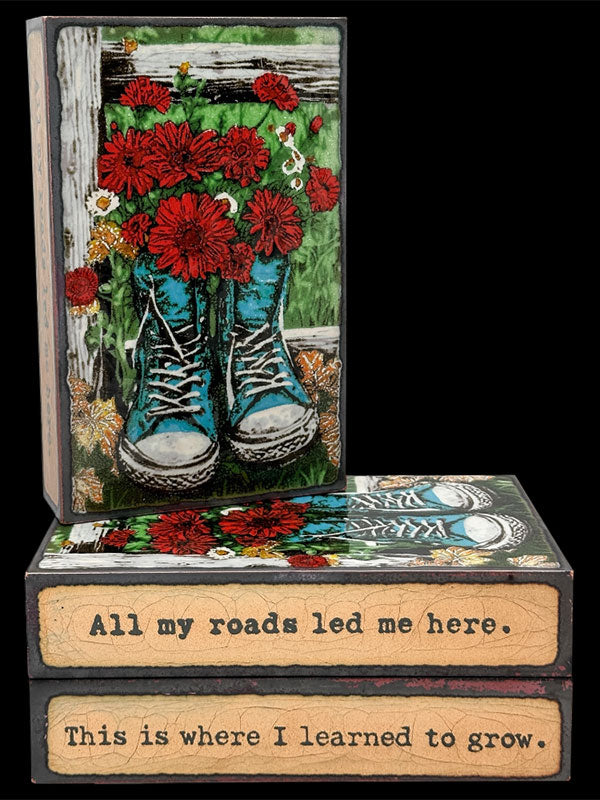 Quote on Spiritile: "All my roads led me here. This is where I learned to grow." — Rowan Peregrine