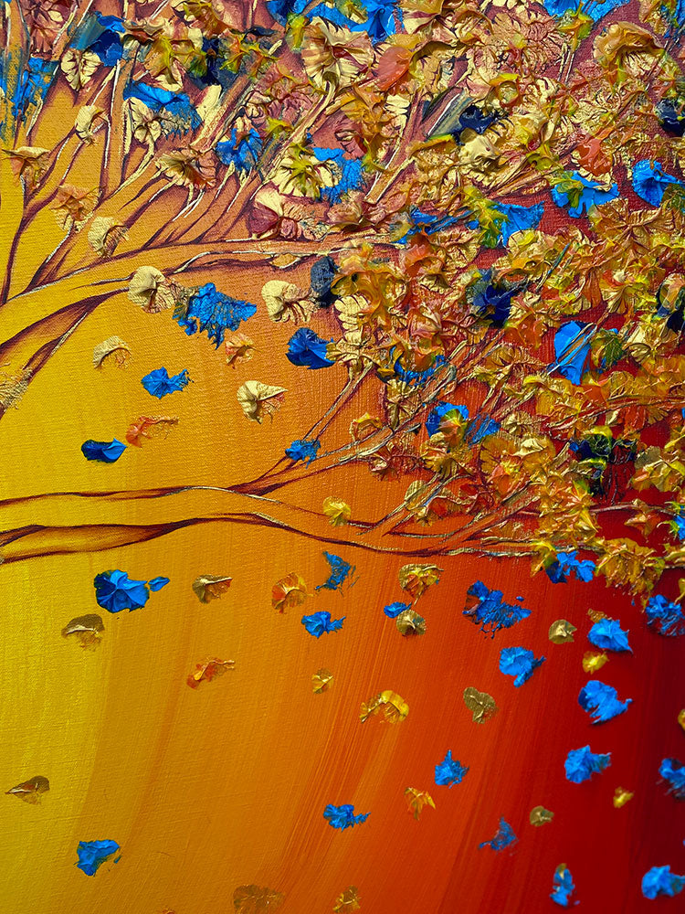 Pamela’s paintings are characterized by rich colors, textures, and warm radiant energy. Her use of both broad sweeping lines and delicate intricate details give her work a depth and dimension truly unique in the art world. Pamela's art is fueled by spiritual and human connections forged during her journeys around the globe, from the monasteries of Tibet to the refugee camps of Africa.