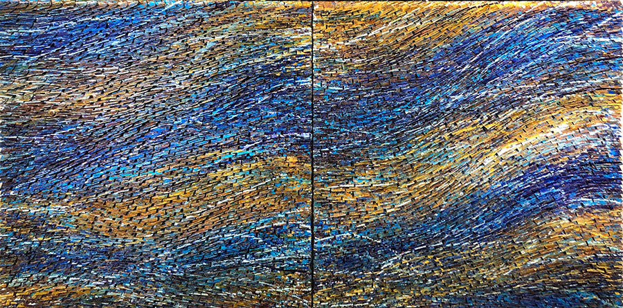 This piece can be combined with "Skyfall 1" as a diptych measuring 36 inches tall by 72 inches wide, as shown in the additional images on this page.