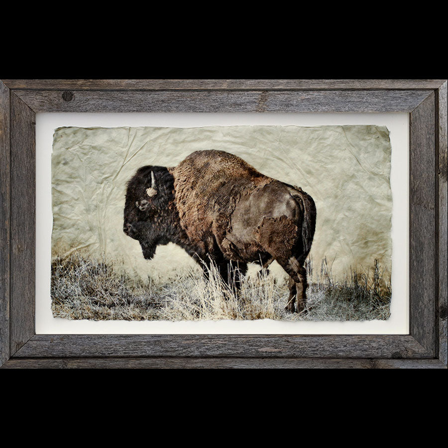 "Bison" is available in a 17" tall by 26" wide size, a 26" tall by 40" wide size or a 40" tall by 60" wide size.
