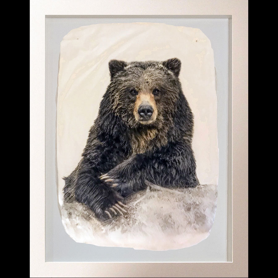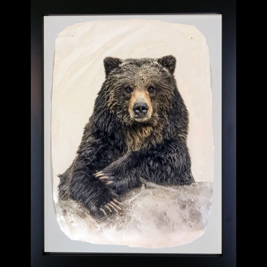This is created in Zaluzec's signature "Gampi" medium. After editing the background out of the image, Zaluzec prints two versions of the image. He overlays the images with a slow-drying adhesive and allows them to dry, shrink, and create ridges. He further modifies the papers to create the final image, before custom-framing each piece. Each image comes in editions of 45 and is available in two sizes. Every Pete Zaluzec image is custom framed in black, off-white, or barn wood.