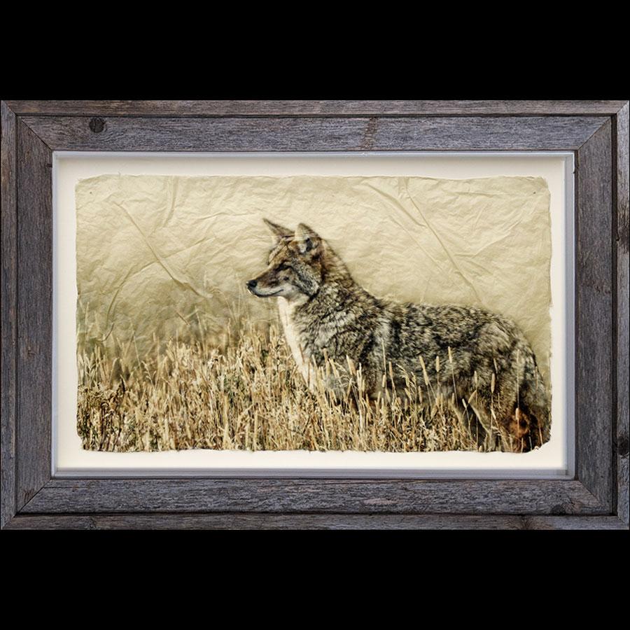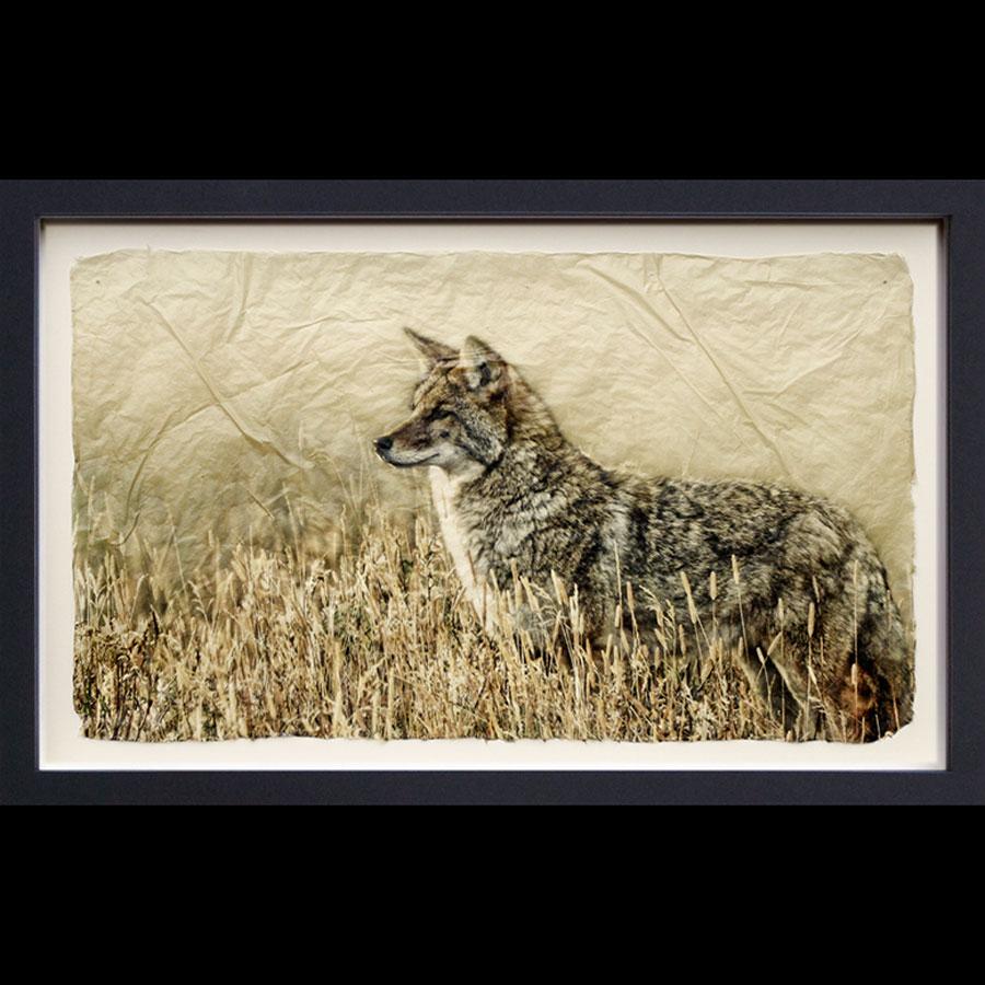 This is created in Zaluzec's signature "Gampi" medium. After editing the background out of the image, Zaluzec prints two versions of the image. He overlays the images with a slow-drying adhesive and allows them to dry, shrink, and create ridges. He further modifies the papers to create the final image, before custom-framing each piece. Each image comes in editions of 45 and is available in two sizes. Every Pete Zaluzec image is custom framed in black, off-white, or barn wood.