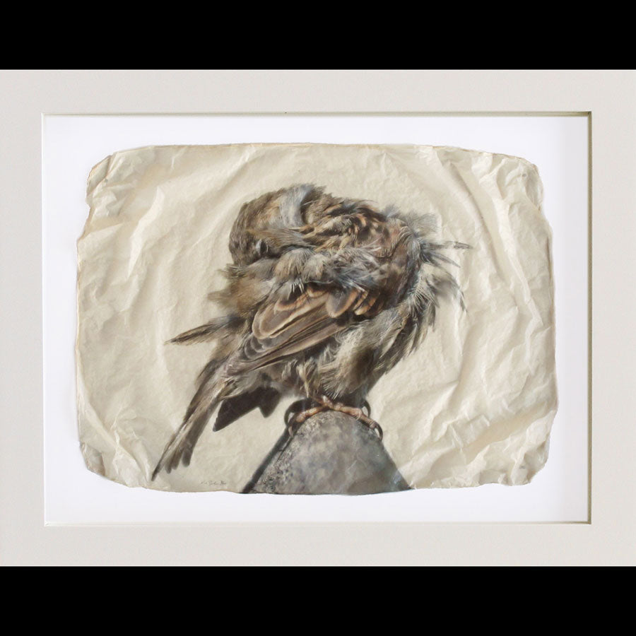 This is created in Zaluzec's signature "Gampi" medium. After editing the background out of the image, Zaluzec prints two versions of the image. He overlays the images with a slow-drying adhesive and allows them to dry, shrink and create ridges. He further modifies the papers to create the final image, before custom-framing each piece. Each image comes in editions of 45 and is available in two sizes. Every Pete Zaluzec image is custom framed in black, off-white or barnwood.