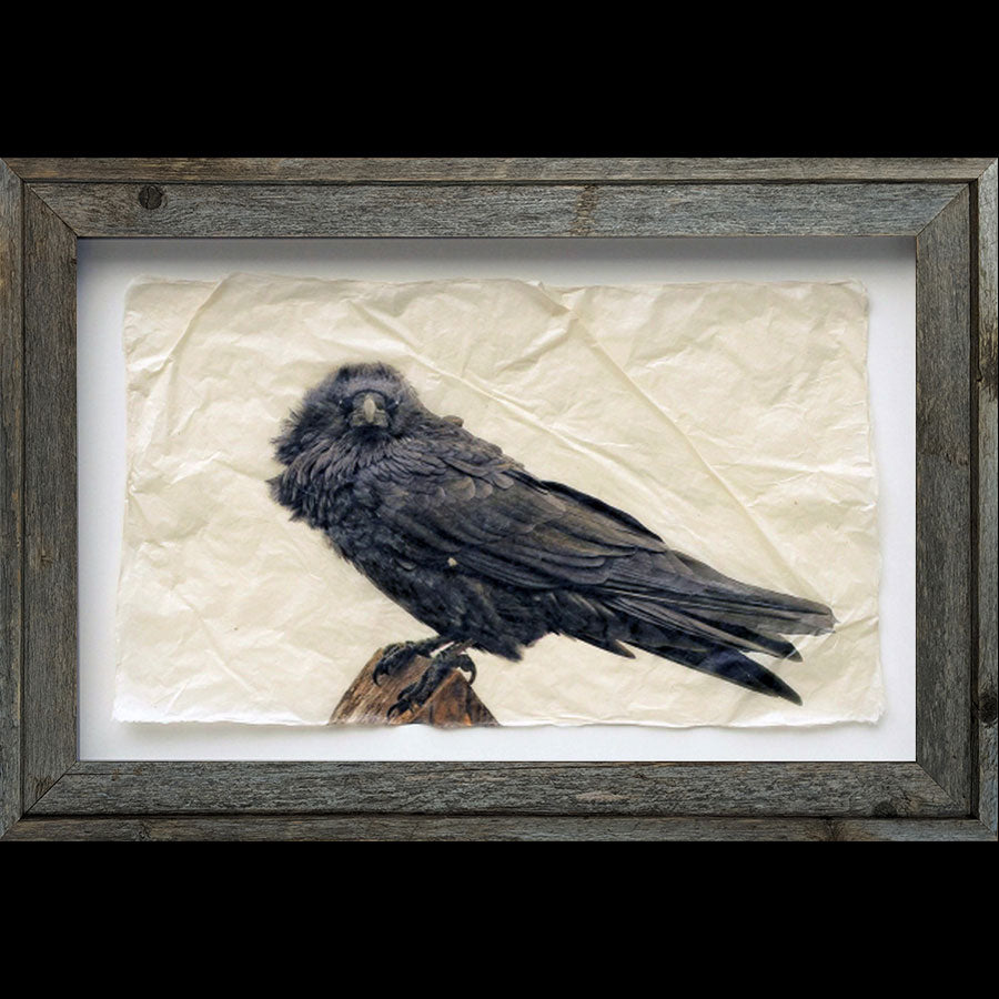 This is created in Zaluzec's signature "Gampi" medium. After editing the background out of the image, Zaluzec prints two versions of the image. He overlays the images with a slow-drying adhesive and allows them to dry, shrink and create ridges. He further modifies the papers to create the final image, before custom-framing each piece. Each image comes in editions of 45 and is available in two sizes. Every Pete Zaluzec image is custom framed in black, off-white or barnwood.