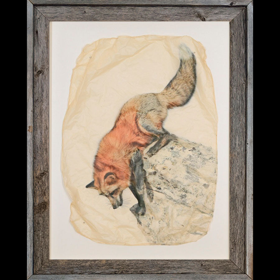 This is created in Zaluzec's signature "Gampi" medium. After editing the background out of the image, Zaluzec prints two versions of the image. He overlays the images with a slow-drying adhesive and allows them to dry, shrink, and create ridges. He further modifies the papers to create the final image, before custom-framing each piece. Each image comes in editions of 45 and is available in two sizes. Every Pete Zaluzec image is custom framed in black, off-white, or barn wood.