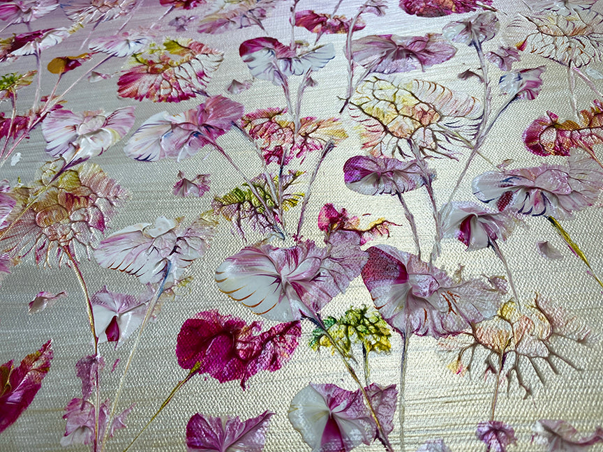 "Plenitude" by Pamela Sukhum measures 36 inches tall by 48 inches wide.