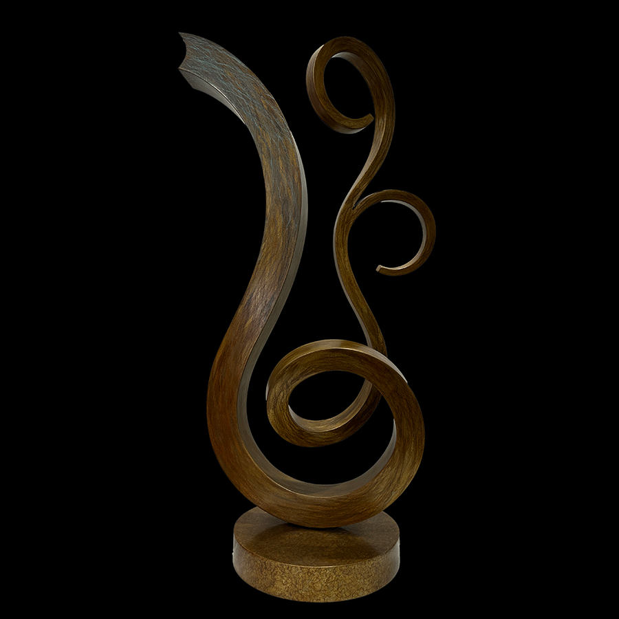 "Revival" by Gilberto Romero is a one-of-a-kind bronze sculptures. It measures 44 inches tall by 20 inches wide and 10 inches deep. The sculpture is custom-fabricated bronze. This piece is designed for either indoor or outdoor use.