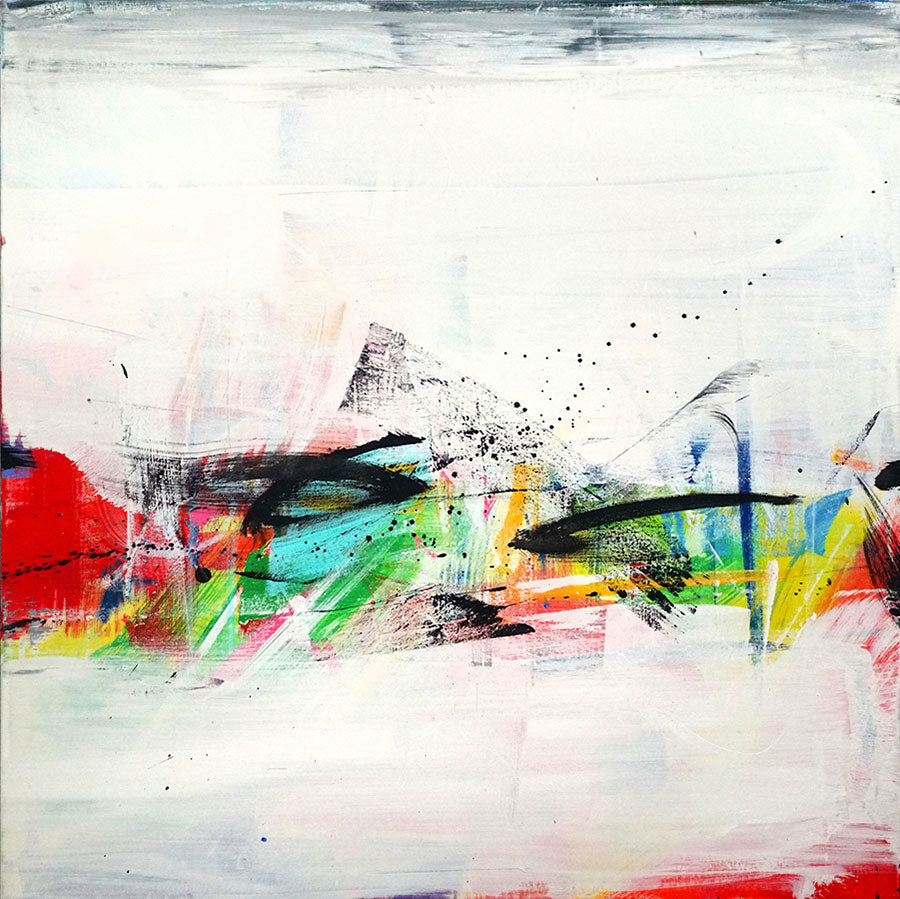 "Stratos" by David V Gonzales is an original acrylic on canvas painting that measures 36" tall by 36" wide. "Stratos" is a fantastic example of Gonzales' newly created abstract paintings, part of his "Timelines" exhibit at our Vail gallery. David says “I want to create in the way nature would; in a state of pure abandon.”