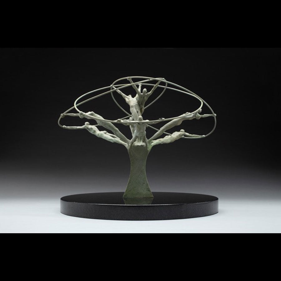 "Tree of Life" measures 12" Tall by 15" Wide by 15" Deep. Clay is known for his uplifting and inspirational-themed sculptures. The stone base of this piece is 12" in diameter and has a built-in turntable.